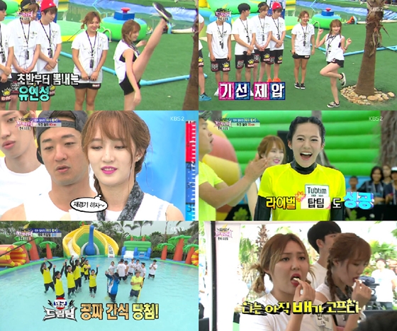1일 오전 방송된 KBS 2TV '출발 드림팀2'는 '한태 드림팀 제1탄-수중장애물 경기 편'으로 꾸며졌다.