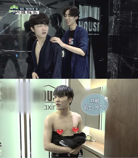 그 중 '깨끗하게' 팀은 몸과 마음을 가다듬고 제대로 '탑독 프로젝트'에 임하겠다며 왁싱샵을 찾았다. '깨끗하게' 팀은 잠시 부끄러워 하는 듯 하다가 곧 왁싱을 위해 전라 노출을 감행하는 과감한 모습을 보여 제작진은 물론 다른 멤버들까지 놀라움을 금치 못했다는 후문이다.