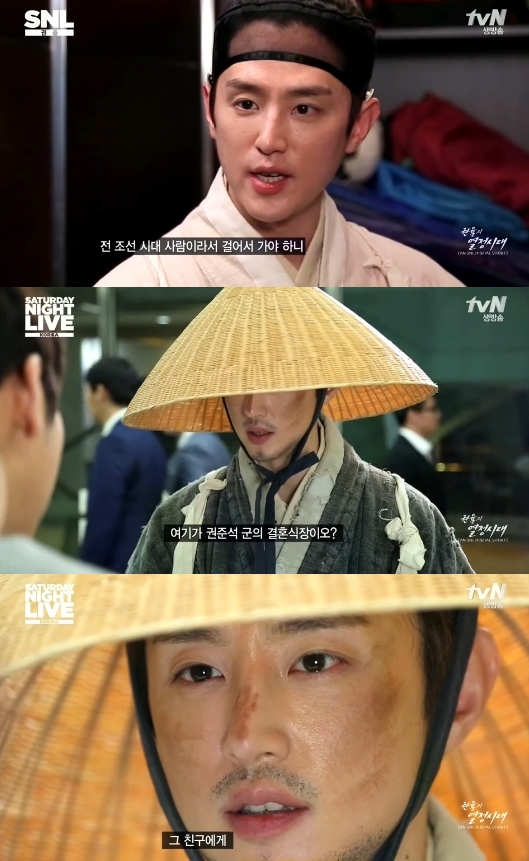 이후 권율은 영화 '명량'에 캐스팅돼 사극 분장을 했다. 권율은 한 달 후에 예정된 친구의 결혼식을 위해 조선사람이 그랬듯 서울에서 대구까지 걸어갔다.