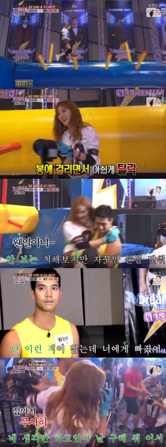 '출발 드림팀2'에서 태국팀 위아가 한국팀 미쓰에이 지아 탈락 후 로맨틱한 모습을 보여줬다.