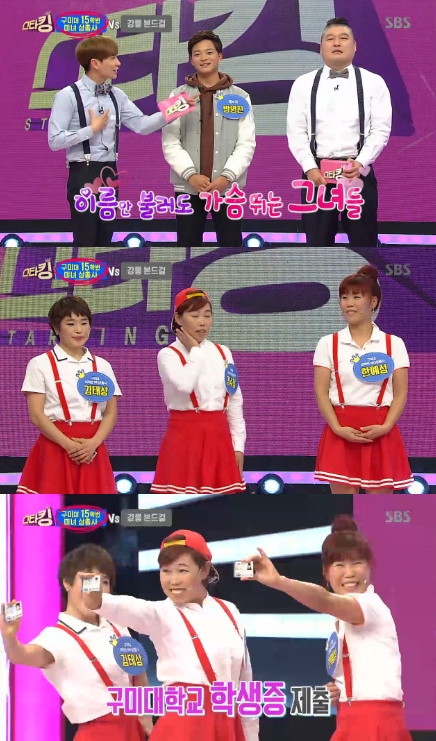 1일 오후 방송된 SBS 예능프로그램 '스타킹'에서는 '구미대 15학번 미녀 삼총사'의 정체가 밝혀졌다.