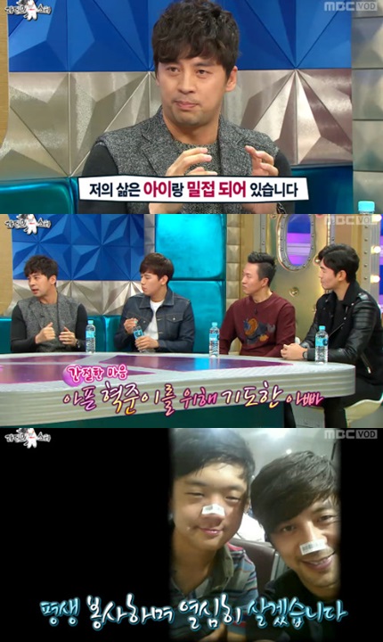 배우 권오중이 '라디오스타'에 출연해 가족애를 드러냈다. 아들 바보에 아내 사랑까지, 무한한 애정으로 이목을 집중시켰다.