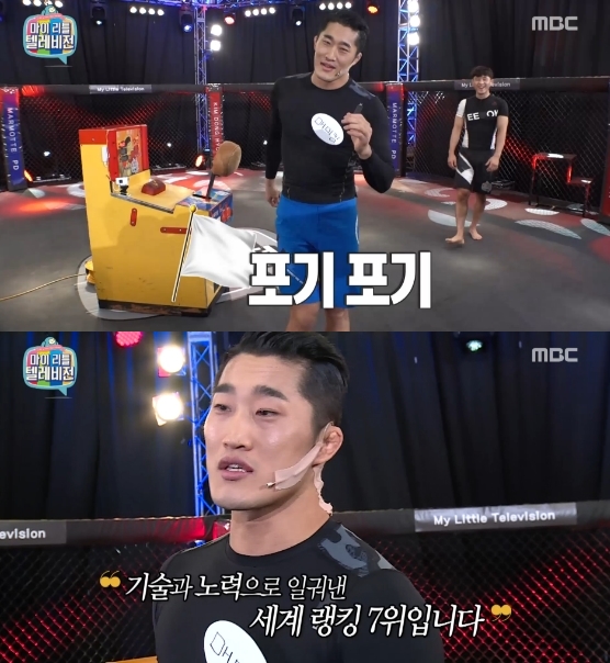 26일 오후 방송된 MBC 예능 프로그램 '마이 리틀 텔레비전'(이하 '마리텔')에서는 펀치 게임 점수가 잘 나오는 비법을 공개하는 김동현의 모습이 그려졌다.
