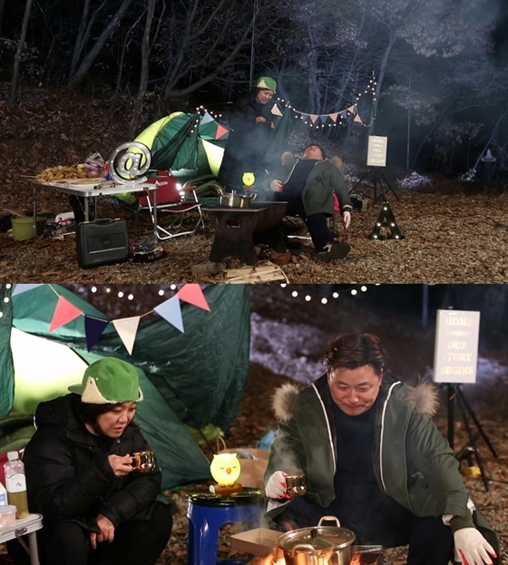 이어 텐트로 들어가 잠자리에 누운 윤정수와 김숙은 내내 추운 날씨를 탓하며 쉽게 잠들지 못했다. 두 사람은 "너무 춥다"를 연발하며 극기 훈련을 연상케 하는 혹한기 캠핑을 억지로 즐겨야만 했다.