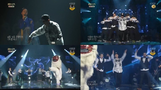 우선 팝핀현준이 박애리의 노래에 맞춰 노래 주제와 어울리는 현대적인 춤을 선보였다. 이어 노래가 자연스럽게 전통 가락으로 넘어갔고, 농악패와 박애리가 무대 중앙에 나와 노래를 불렀다. 이어 팝핀현준도 가세해 마치 전래 동화의 한 장면같은 재미있는 퍼포먼스를 완성시켰다.