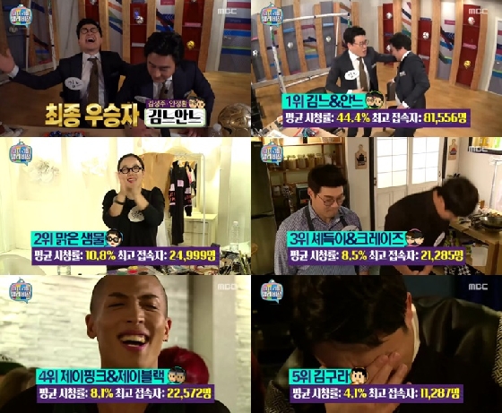시청률 1위 발표가 나자 5위를 한 김구라는 "다음번에 이영표 선수를 데리고 오겠다"고 말해 폭소를 자아냈다.