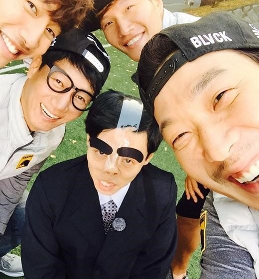 사진 속에는 '런닝맨'에 함께 출연 중인 하하와 지석진, 이광수, 김종국, 유재석의 모습이 담겨 있다.