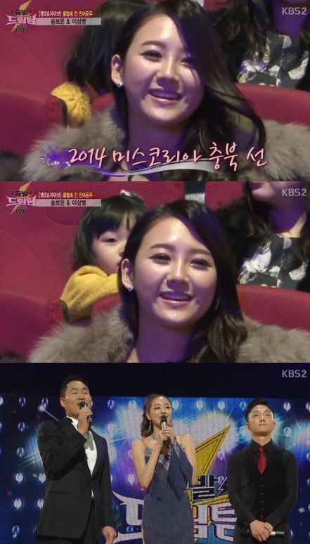 이날 무대를 마친 송보은은 "2014 미스코리아인 (객석에) 동생이 와 있다"고 말했다. 이에 방청석에 앉아있던 동생의 얼굴이 공개됐다.