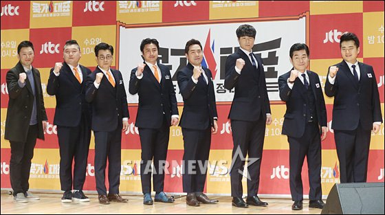 연예방송[★포토]'쿡가대표 화이팅'발행 : 2016.02.16 ・ 12:13이동훈 기자이창우PD, 강호동, 김성주, 안정환, 샘킴, 최현석, 이연복, 이원일이 16일 오전 서울 마포구 상암동 JTBC 사옥에서 열린 예능프로그램 '셰프원정대-쿡가대표' 제작발표회에 참석해 포즈를 취하고 있다.'셰프원정대-쿡가대표'는 강호동, 김성주, 안정환이 MC를 맡은 푸드 도장 깨기 버라이어티로 대한민국 대표 셰프들이 세계 최고의 셰프들과 요리대결을 펼치는 해외 올로케이션 프로그램이다.<저작권자 © 스타뉴스, 무단전재 및 재배포 금지>쿡가대표추천 기사이동훈 기자기자홈좋아요 연예-방송의 인기 급상승 뉴스연예-방송의 최신 뉴스