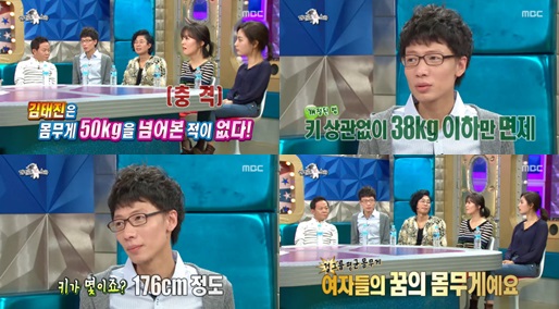 김구라는 "지금은 몸무게가 얼마나 되냐"라고 물었고 김태진은 "46kg 정도"라고 말했다.