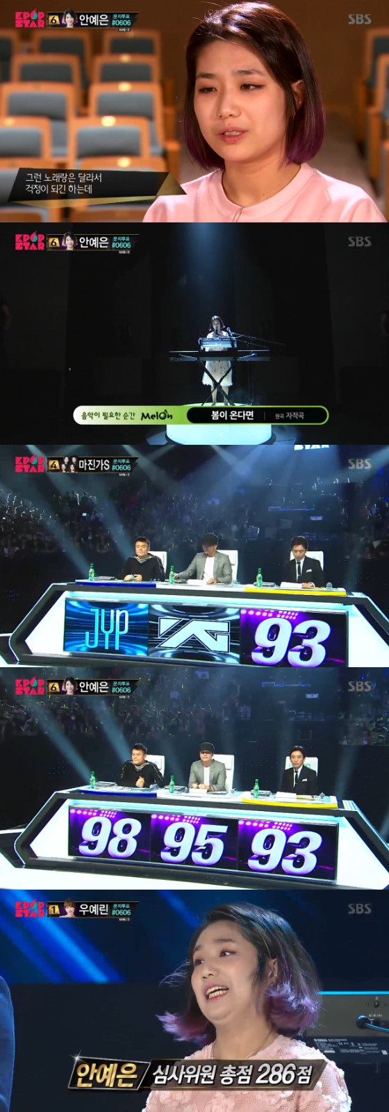 'K팝스타5'에서 안예은이 심사위원들의 칭찬을 안고 286점이라는 높은 점수를 받게 됐다.