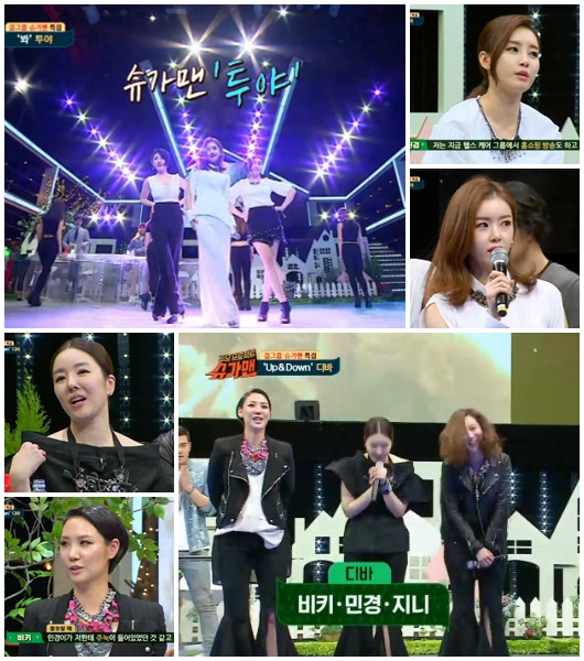 지난 5일 오후 방송된 JTBC '투유 프로젝트-슈가맨을 찾아서'(이하 '슈가맨')에는 '걸그룹 슈가맨 특집'으로 투야의 안진경, 김지혜, 류은주, 디바의 비키, 민경, 지니가 출연했다.