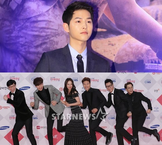 송중기(위)와 '런닝맨' 팀/사진=스타뉴스