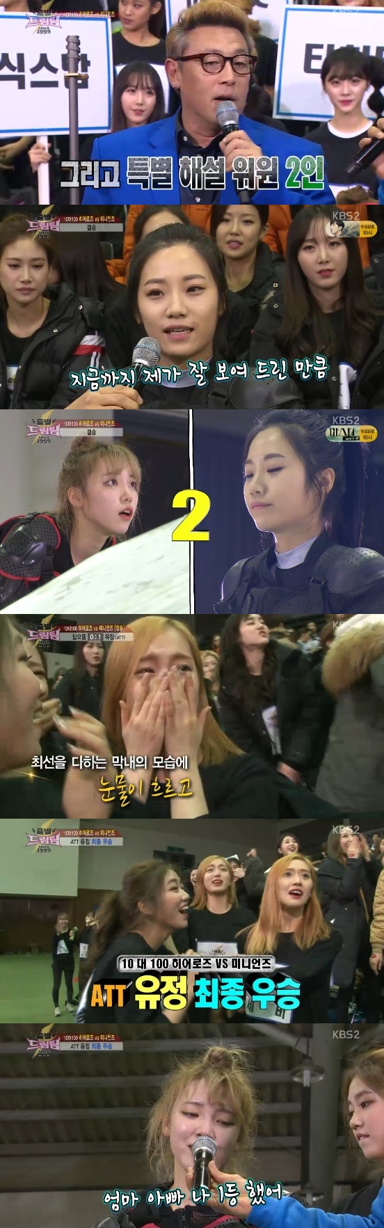 걸그룹 ATT 유정이 '10대 100 히어로즈 vs 미니언즈' 편에서 최종 우승을 차지했다.