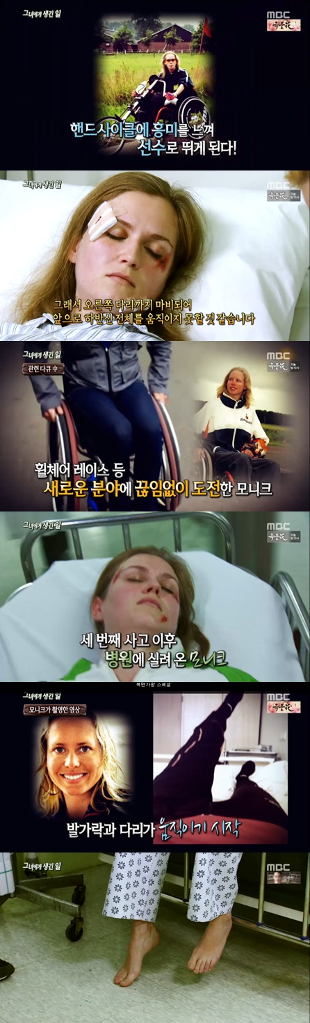 1일 오전 방송된 MBC '신비한TV-서프라이즈'에서는 네덜란드 핸드사이클 선수 모니크 반 데르 보스트의 감동적인 이야기가 그려졌다.