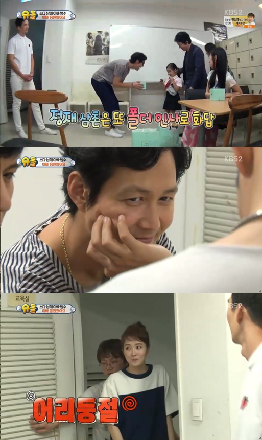 소다남매는 이범수와 함께 있던 배우 이정재와 진세연을 만났다. 이정재는 소다남매에게 90도 폴더인사를 건냈다. 소을이는 이정재에게 '잘생김'을 선물했고, 이정재는 답례로 소을이를 쓰다듬었다. 이정재는 다을이에게 시선을 떼지 못했다. 소을이는 영화 출연진 중 아빠가 가장 나쁘게 생겼다고 대답했고 다을이는 이정재를 지목했다. 이어 배우 김선아가 대기실에 등장했다. 김선아는 "너무 예쁘다"를 연발하며 아이들에게서 눈을 떼지 못했다.