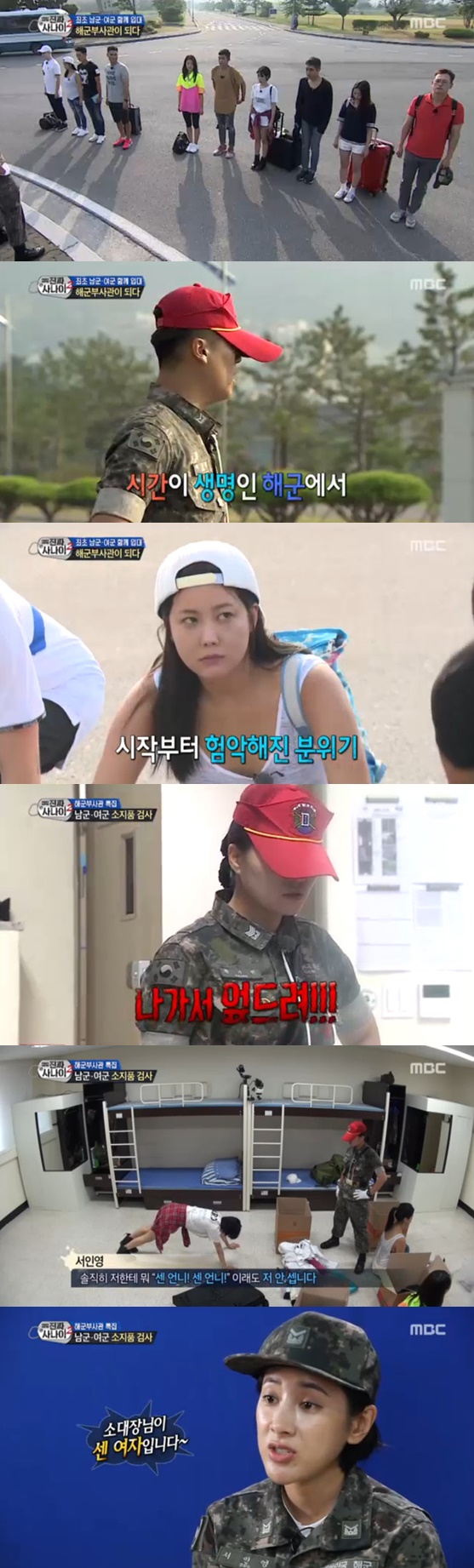 이들은 오전 8시까지 '해군 교육 사령부'에 모여야했다. 하지만 서인영과 줄리안은 시계가 8시를 가리키기 직전 겨우 정문을 통과했고, 박재정은 8시가 조금 넘어 모두가 있는 곳에 도착했다. 때문에 이들은 시작부터 기합을 받으며 살벌한 분위기로 '해군 교육 사령부' 생활을 시작했다.