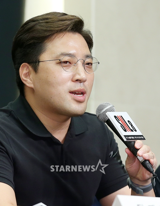 연예방송[★포토]민진기 PD, '새로운 변화 기대하세요'발행 : 2016.08.31 ・ 14:19김휘선 인턴기자민진기 PD가 31일 오후 서울 마포구 스탠포드 호텔에서 진행된 tvN 'SNL코리아 시즌 8' 제작발표회에 참석해 인사말을 하고 있다.크루, 제작진, 방송시간까지 확 달라진 'SNL코리아 시즌8'은 오는 9월 3일 밤 첫 방송 된다.<저작권자 © 스타뉴스, 무단전재 및 재배포 금지>브리핑요약 없이도 가볍게 읽으실 수 있는 짧은 뉴스입니다.추천 기사김휘선 기자기자홈좋아요연예-방송의 인기 급상승 뉴스연예-방송의 최신 뉴스AD