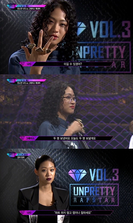 지난 9일 방송된 '언프리티 랩스타3'은 7번 트랙의 주인공을 뽑는 미션으로 꾸며졌고, 7번 트랙은 나다가 주인공으로 뽑혔다.