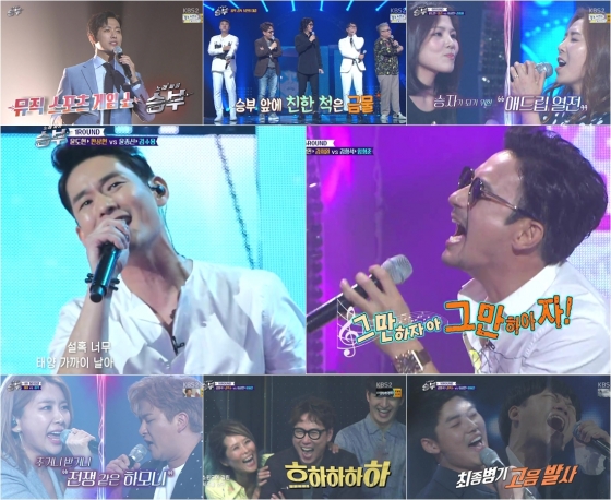 이날 '노래싸움-승부'에는 음악감독 김형석, 윤종신, 정재형, 윤도현, 이상민과 총 15인의 무대에 대한 열정을 가진 비가수 연예인들이 모여 서바이벌 노래대결을 펼치는 모습이 그려졌다.