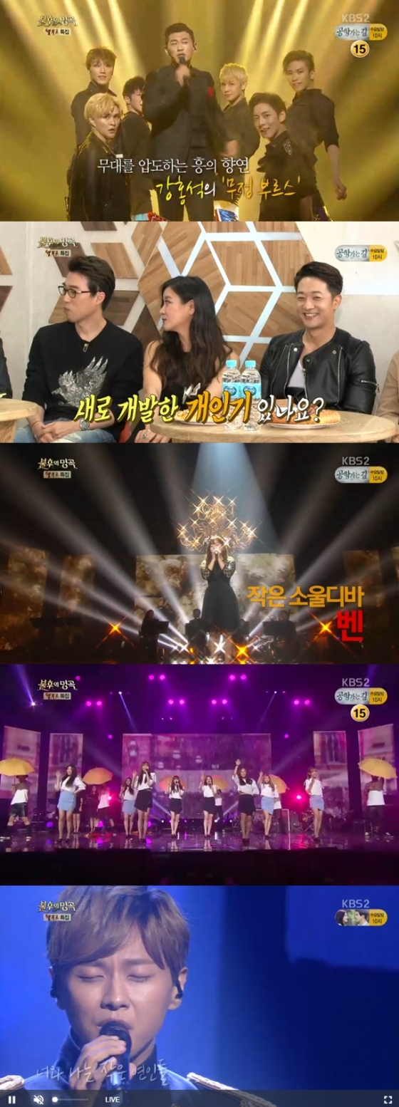 24일 오후 방송된 KBS 2TV 예능 프로그램 '불후의 명곡-쉘부르 특집'편에서는 김현성, 김바다, 유리상자, 서문탁, 임태경, 클래지콰이, 팝핀현준&박애리,강홍석, 김동준, 벤, 러블리즈, 김주나 등 12팀으로 꾸며졌다.