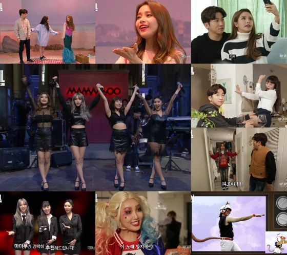 여기에 끝없이 노래를 부르는 '꿀성대 여친' 휘인, 순수하지만 엉뚱한 매력을 지닌 문별, 외모는 할리퀸이지만 "아닌데예 로버트 할린데예"라고 성대모사를 하는 화사까지 쉴 틈 없는 재미를 선사했다.