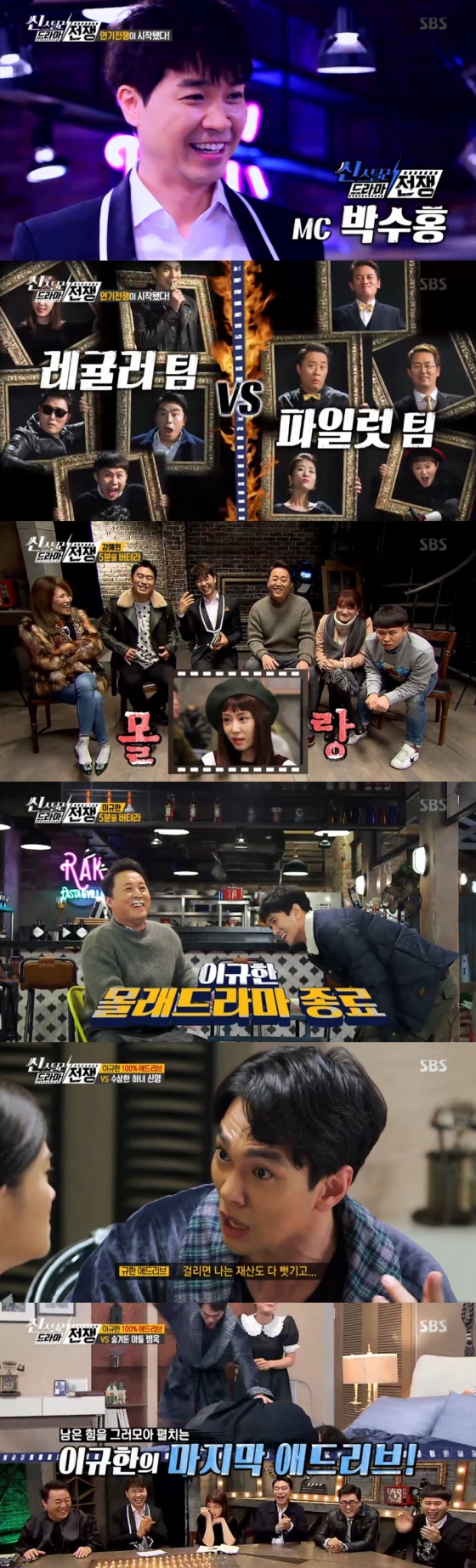 5일 방송된 SBS 새예능프로그램 '씬스틸러-드라마 전쟁'(연출 황인영 정우진 최형인 유하나)에서 10명의 연기자들이 연기력과 재치로 치열한 대결을 펼쳤다.