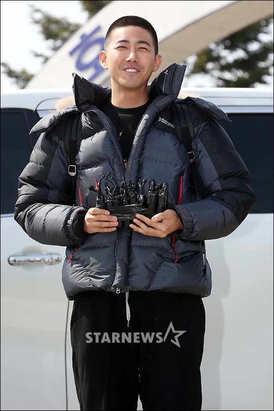 그룹 제국의 아이들 출신 방송인 광희(황광희·29)가 13일 오후 충남 논산시 육군훈련소로 입소하며 인사를 하고 있다.