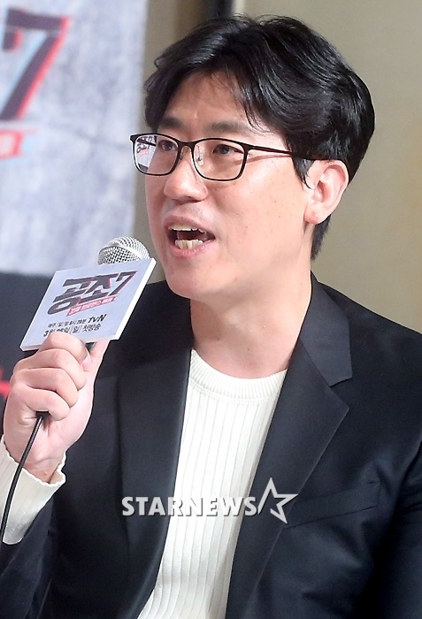 17일 오전 1시 서울 영등포구 타임스퀘어 아모리스홀에서 열린 tvN 새 예능프로그램 '공종7' 제작발표회에서 연출자 전성호PD는 "'예능인력소'의 김구라, 서장훈씨가 정말 좋은 케미라 아까웠다. 이경규씨와 박명수씨는 콤비를 이뤄하기를 원했기에 캐스팅했다. 네 분을 섭외한 상태에서 젋은 예능이 두려워해 섭외가 쉽지 않았다. 은지원, 이기광, 권혁수씨는 섭외는 했지만 좀 두려워하더라"고 말했다.
