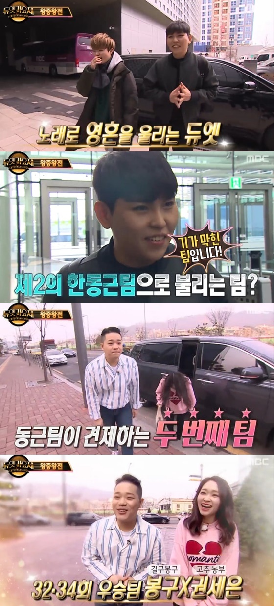 이날 첫 왕중왕전에서 소개된 첫 번째 팀은 한동근과 최효인 팀. 가장 무섭고 견제되는 팀이 누구냐는 질문에 머뭇거리던 최효인은 "제2의 한동근 팀이라고 불린다"며 두 번째 팀을 소개했다.