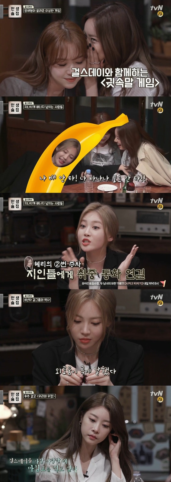 13일 오후 방송된 tvN 예능프로그램 '인생술집'에서는 걸그룹 걸스데이가 게스트로 출연했다.