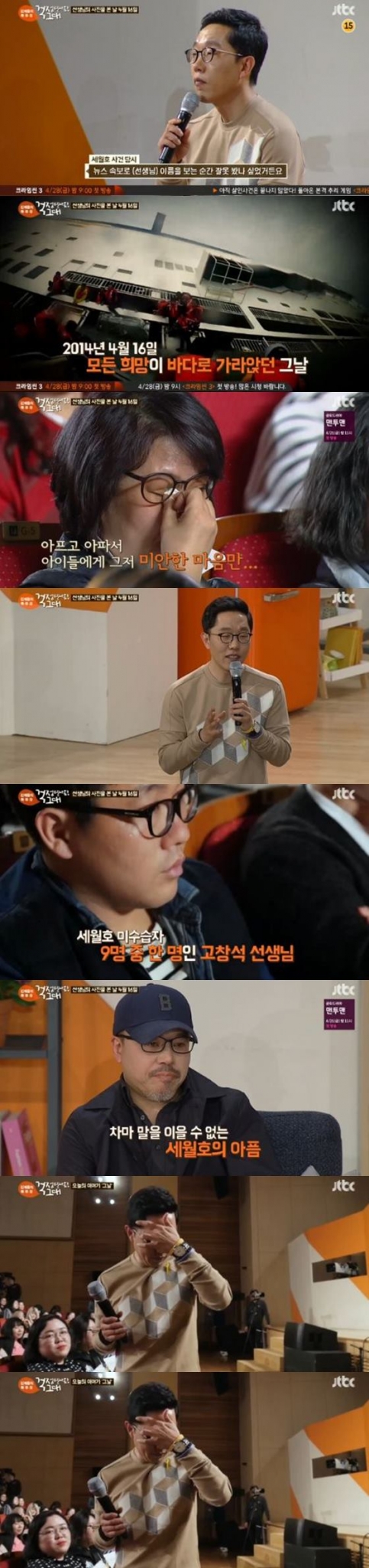 이날 방송에서 20대 여성 청중이 보낸 중학교 시절 체육 선생님에 대한 사연에 청중들이 눈물을 흘렸다. 그녀는 2014년 4월 16일을 떠올리며 "뉴스속보에서 선생님 이름을 본 순간 내가 잘 못 봤나 생각했다"며 조심스럽게 입을 열었다.