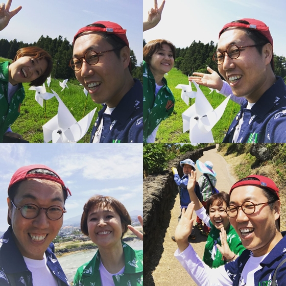 사진 속 김영철과 송은이는 제주도 풍경을 즐기며 여행 중이다. 송은이는 바람개비 앞에서 설레는 표정으로 김영철과 셀카를 찍는 등 달달한 분위기를 연출해 실제 연인을 방불케 했다.
