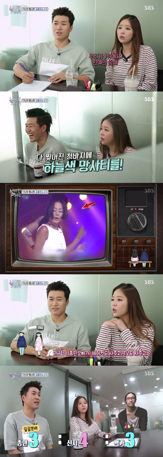 12일 오후 방송된 SBS 예능프로그램 '미안하다 사랑하지 않는다 - 남사친 여사친'에서는 17년 차 남사친 여사친으로 신지와 김종민이 등장했다.