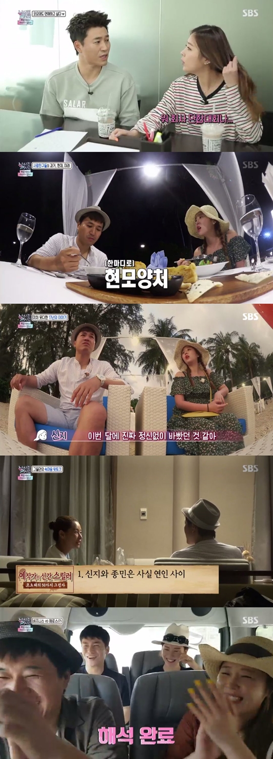 19일 오후 방송된 SBS 예능프로그램 '미안하다 사랑하지 않는다 - 남사친 여사친'에서 신지와 김종민은 태국 카오락으로 허니문 답사 여행을 떠났다.