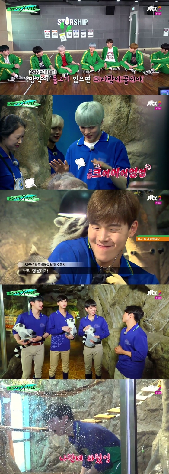 20일 오후 방송된 JTBC2 예능프로그램 '몬스타 엑스레이 2'에서 몬스타엑스는 각자 무작위로 고른 동물들과 친해지는 시간을 가졌다.