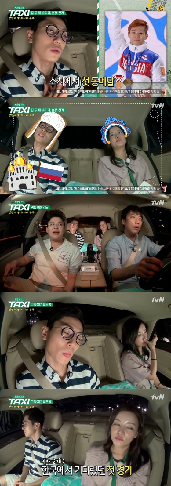 안현수·우나리 부부가 '택시'에 출연해 러브스토리와 러시아 생활에 대해서 전했다.