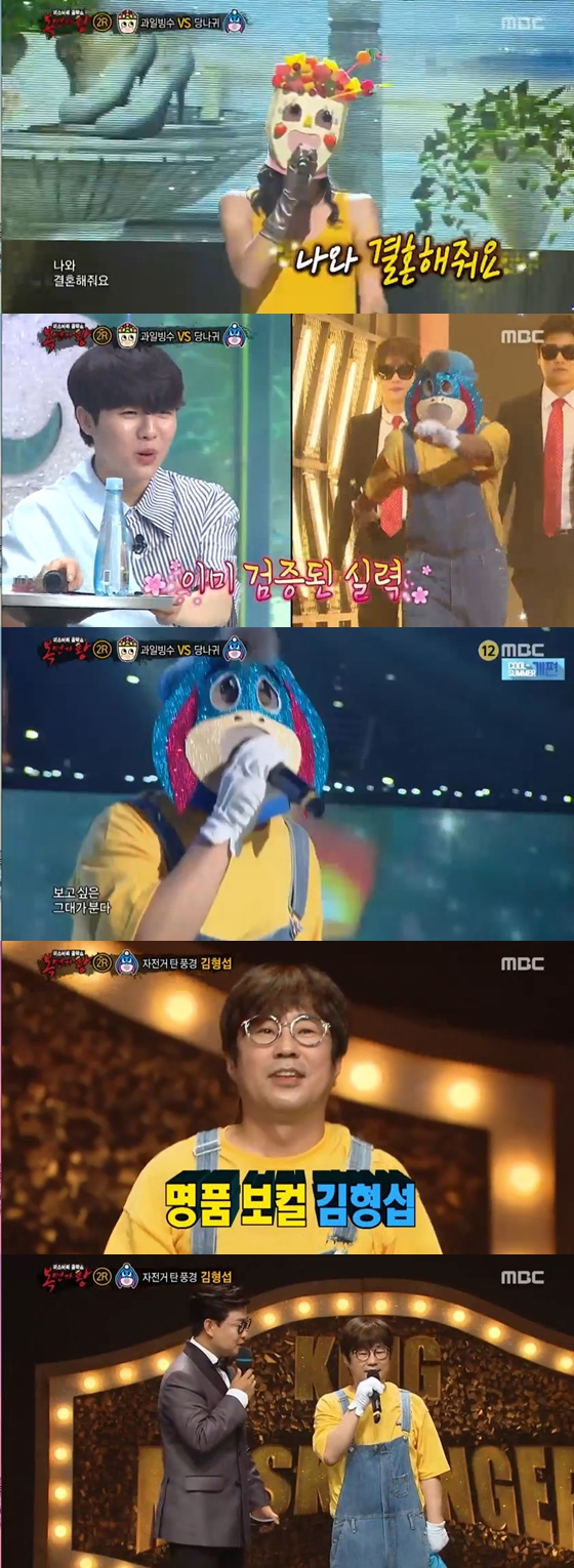 두 사람의 대결은 54대 45로 과일빙수가 승리했다. 이에 따라 당나귀의 정체가 공개됐다. 당나귀의 정체는 다름 아닌 자전거 탄 풍경의 가수 김형섭이었다.