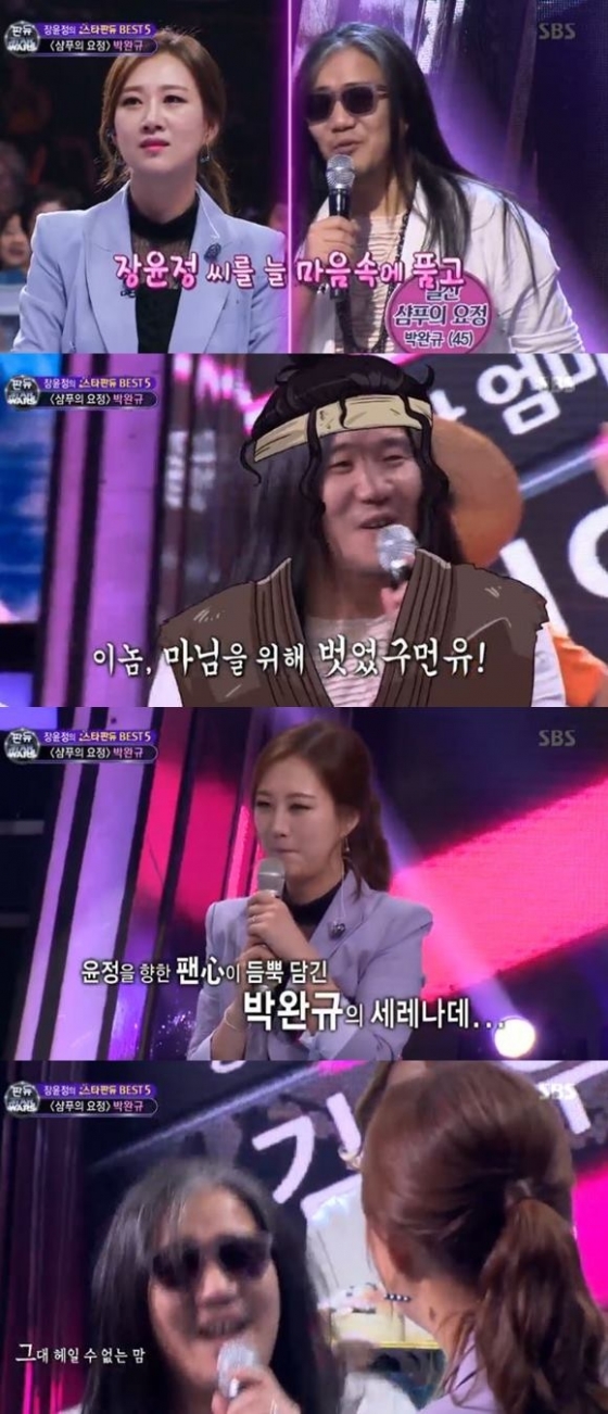 또 박완규는 급기야 장윤정을 위해 선글라스를 벗으며 귀여움과 순수함으로 어필해 웃음을 안겼다.
