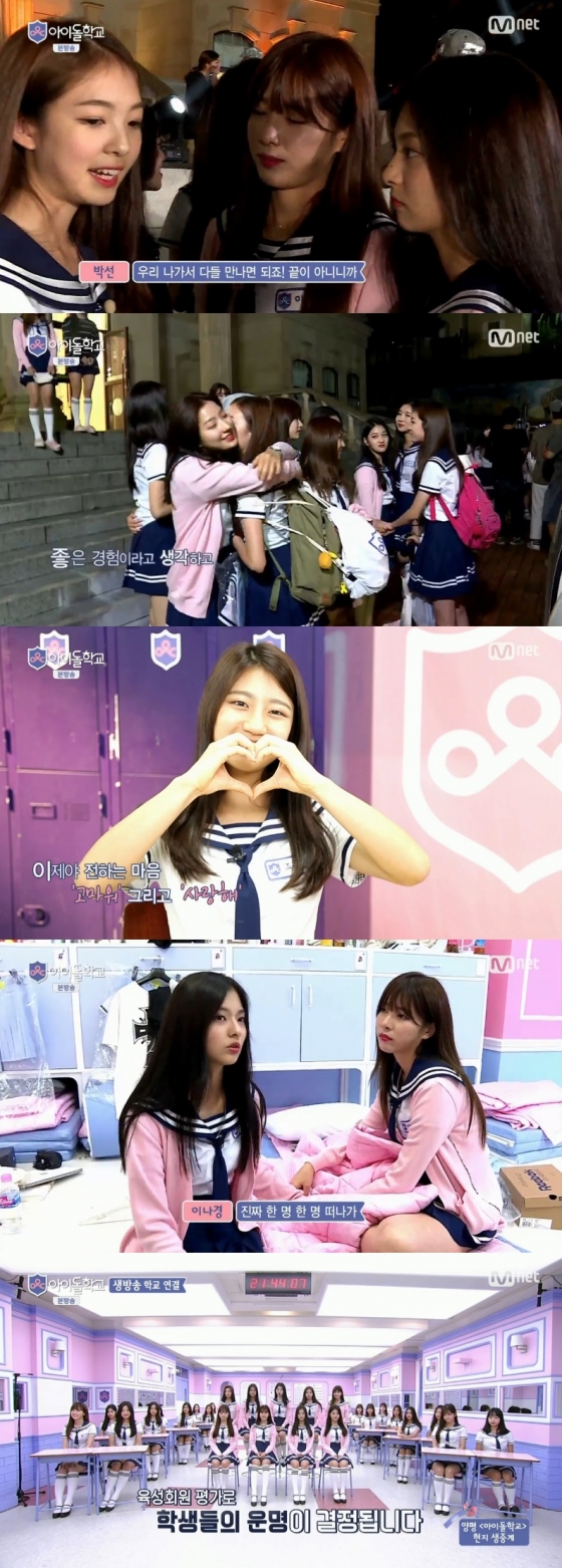 31일 방송된 Mnet '아이돌학교'에서는 2차 탈락 명단에 이름을 올린 김은결 이영유 박선 조유빈 등 4명 학생들과의 이별이 공개됐다. 학생들은 서로에게 응원과 위로를 건네며 눈물을 글썽였다.