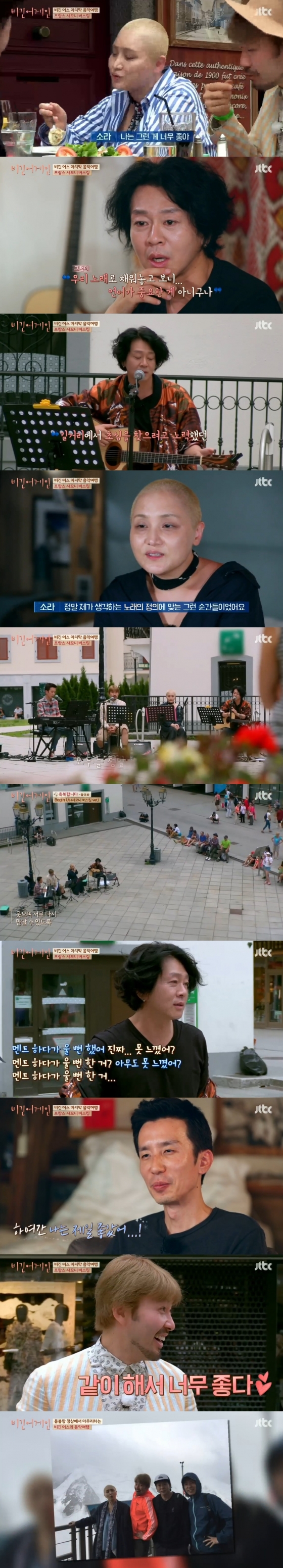 10일 오후 방송된 JTBC 예능프로그램 '비긴어게인'에서는 프랑스 샤모니에서 마지막 버스킹에 나선 비긴어스(이소라, 유희열, 윤도현, 노홍철)의 모습이 그려졌다.