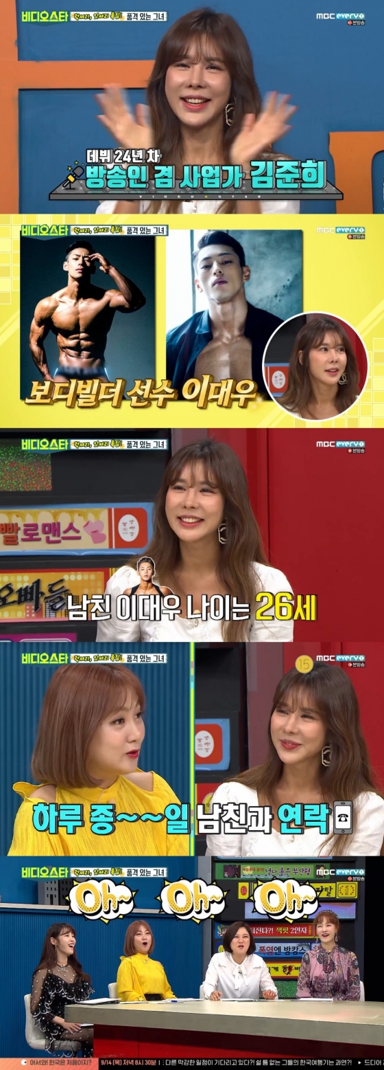 그리고 김준희는 "남자친구와 서울과 부산에서 장거리 연애를 하는 데 항상 연락을 한다. 남자친구와 40분 이상 연락이 끊긴 적이 없다. 남자친구가 스피닝 강사인데 수업이 끝나자마자 연락을 한다. 정말 행복하다"라고 말했다.