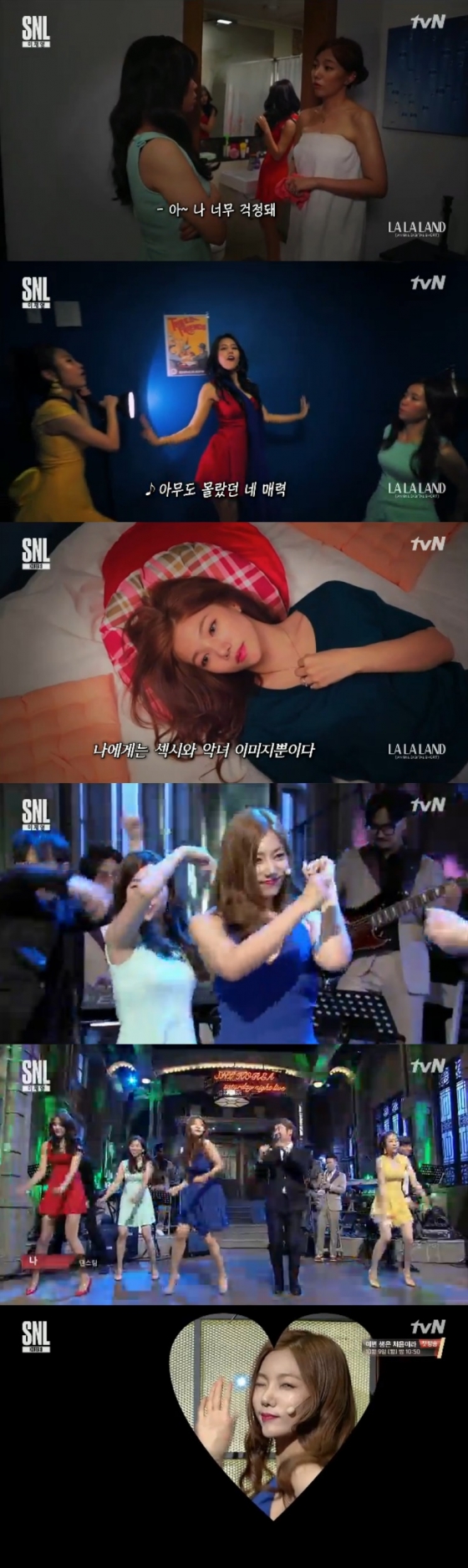 이날 방송에서 이채영은 'SNL9' 출연을 앞두고 느끼는 기대감과 불안감을 담은 짤막한 뮤지컬 '라라랜드'로 시청자들에게 인사했다. 이채영은 'SNL9' 출연이 걱정된다며 "내가 잘할 수 있을지도 사람들이 날 좋아하는지도 모르겠다"고 말했다.