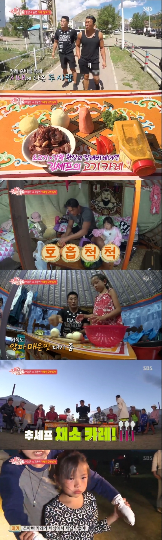 쇼핑이 끝나고 몽골 카레왕이 되기 위한 대결이 본격적으로 시작됐다. 추성훈은 아삭아삭한 맛이 살아있는 야채 카레, 김동현은 강황이 들어간 고기 카레를 만들었다. 요리 시작부터 추성훈의 옆에는 추사랑이 함께하며 안마와 잔심부름을 도왔고 김동현은 두 사람을 질투했다.