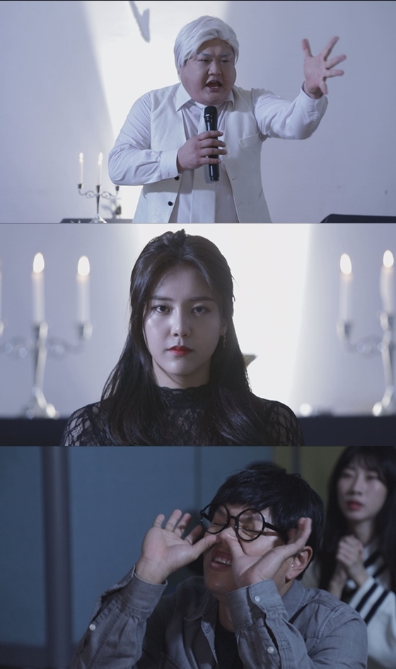 먼저 김준현은 드라마에서 악명을 떨쳤던 사이비 교주로 변신한다. 백발의 머리와 강렬한 표정 등 실제 드라마 속 장면이라 해도 어색하지 않은 연기를 펼친다. 특히 '새한우님'의 축복을 받았다며 열변을 토하는 김준현의 모습이 웃음을 자아낸다.