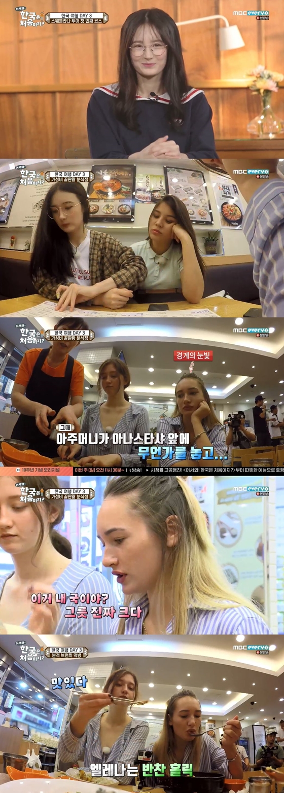 12일 오후 방송된 MBC 에브리원 예능프로그램 '어서와 한국은 처음이지?'에서는 러시아에서 온 한국 유학생 스웨틀라나의 친구들 레기나, 엘레나, 아나스타샤의 여행기가 펼쳐졌다.
