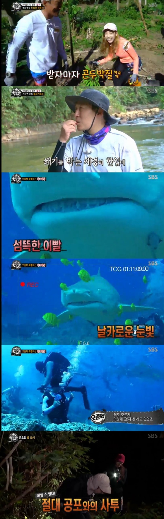 '정글의 법칙' 멤버들은 김병만의 부재에도 용감한 모습을 보여줬다. 오종혁은 샤크 피딩에 도전했다.