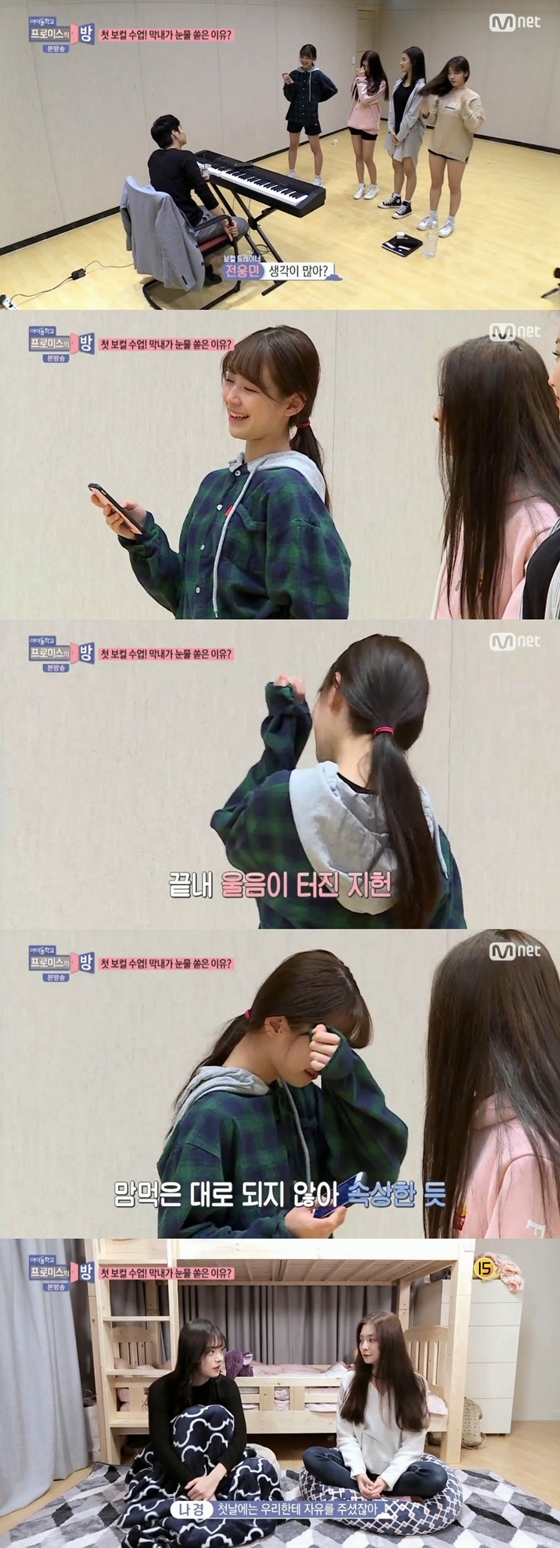걸 그룹 프로미스의 백지헌이 보컬 수업 중 눈물을 보였다.
