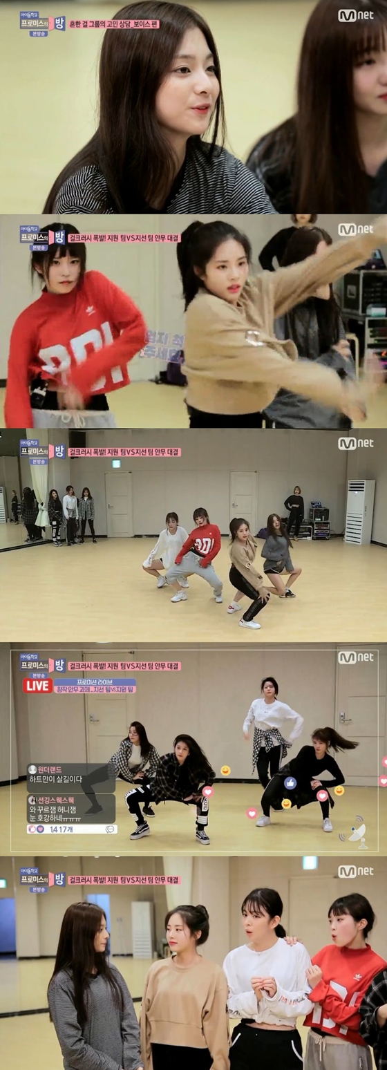 프로미스는 생중계 미션을 받았다. 지원 팀과 지선 팀이 창작 안무 대결을 벌여 '좋아요'를 많이 받는 팀이 승리하는 미션이었다. 지선 팀은 노지선, 이새롬, 장규리, 이서연 그리고 지원 팀은 박지원, 송하영, 이채영, 이나경, 백지헌이었다.