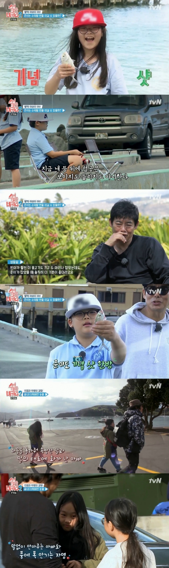 앞서 성동일의 딸 성빈은 아들 성준과 달리 낚시에 척척 성공하며 성준을 풀이 죽게 했다. 성준은 성급하게 낚시대를 올려 계속 낚시에 실패했다.